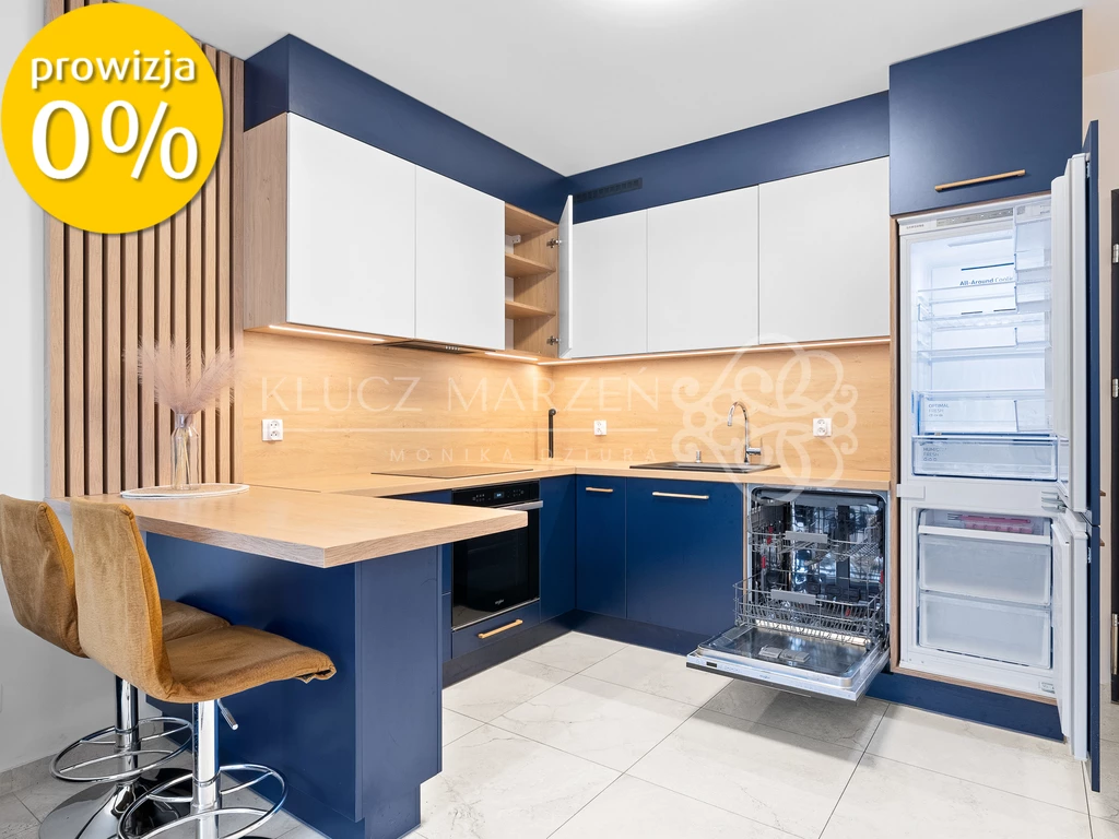 Rodzice docenią praktyczną i w pełni wyposażoną kuchnię w zabudowie (zmywarka, piekarnik, lodówka, okap, pralka), dzieci — przestrzeń do zabawy i własne pokoje.