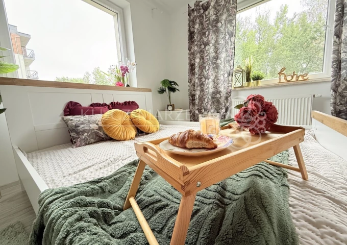 Wyobraź sobie codzienność w jasnym, przestronnym apartamencie, gdzie poranne światło wpada przez duże okna, a kawa pita na narożnym tarasie smakuje jak chwila ciszy przed dobrym dniem. Tak właśnie może wyglądać Twoje życie w tym wyjątkowym miejscu.Ten 79-metrowy apartament to coś więcej niż tylko mieszkanie – to wygodna przestrzeń, zaprojektowana z myślą o komforcie i funkcjonalności. Położony na 1. piętrze nowoczesnego, kameralnego budynku z 2015 roku, znajdującego się na zamkniętym, bezpiecznym osiedlu, daje Ci to, czego szukasz: prywatność, spokój i codzienną wygodę.