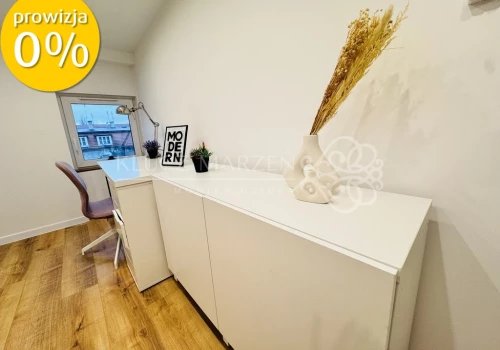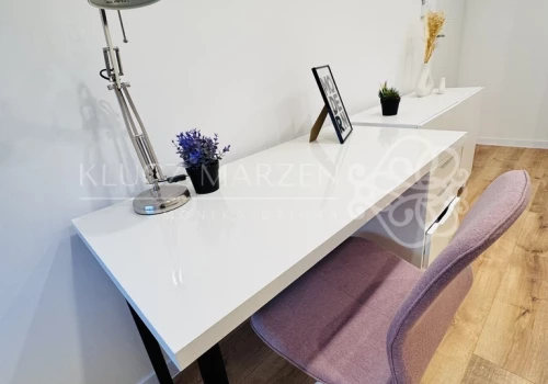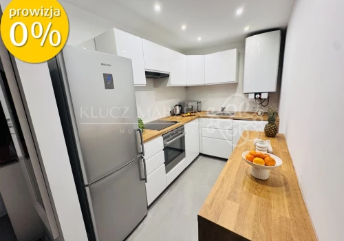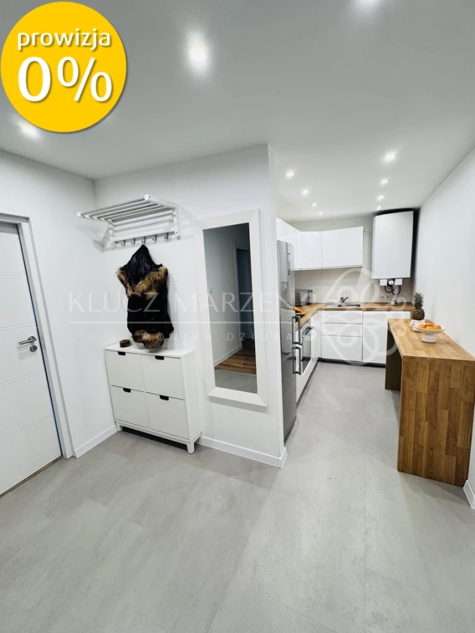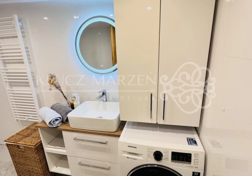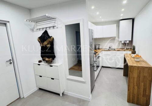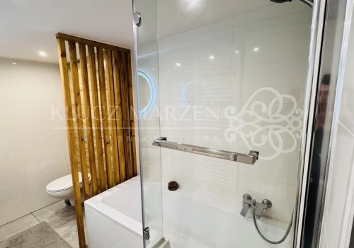 - Wspólna kuchnia z nowoczesnym sprzętem: zmywarka 60 cm, piekarnik, lodówka, mikrofalówka, okap